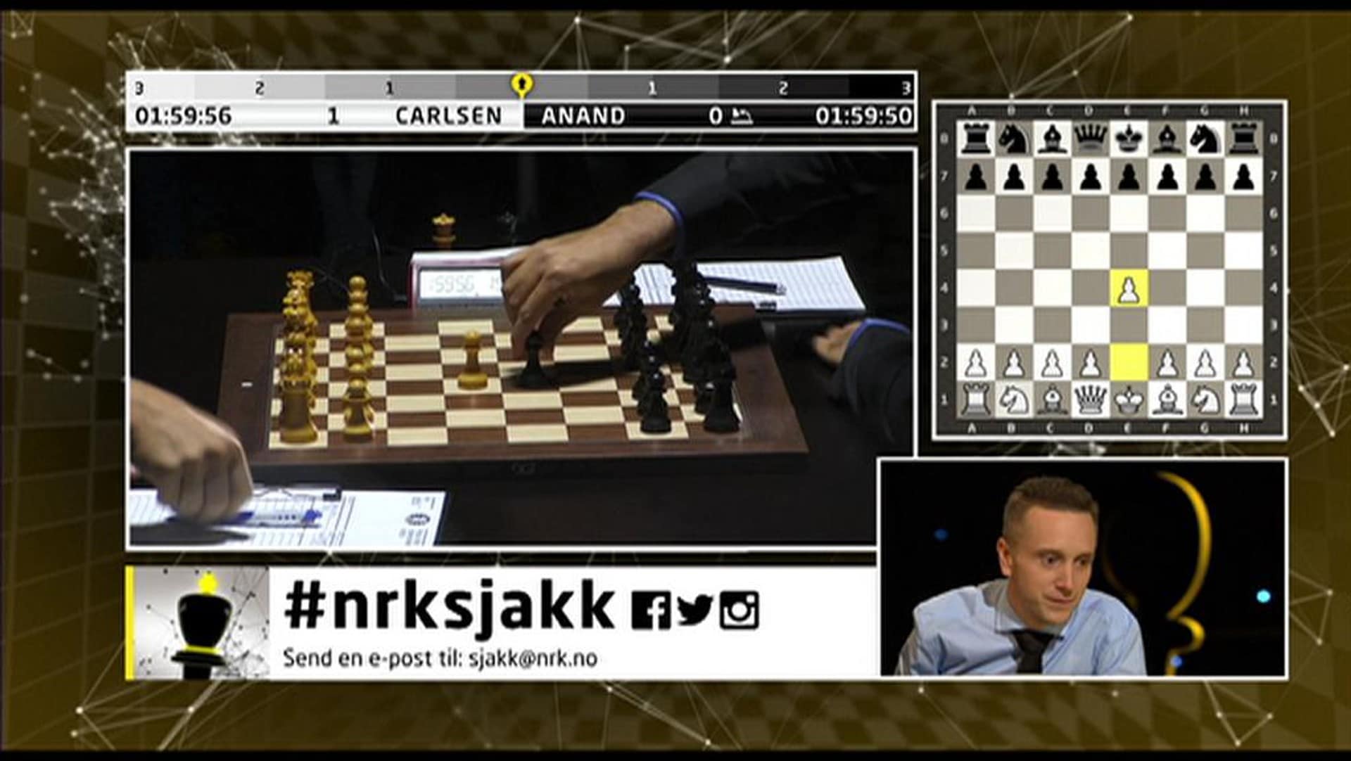 Sok i nrk tv. Vi folger vm i sjakk 2018.